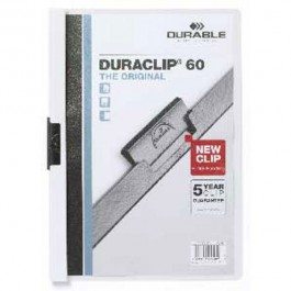Obal vyvinutý spoločnosťou DURABLE pre viazanie nedierovaných listov. Materiál z PVC s unikátnym kovovým klipom, ktorý sa prispôsobí vloženému počtu listov a priehľadnou prednou stranou. Ideálny na prezentácie, ponuky, správy, poznámky na konferencie, semináre a pod. Formát A4. Kapacita 1-60 listov. Väčšie balenie 25 ks.