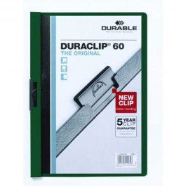 Obal vyvinutý spoločnosťou DURABLE pre viazanie nedierovaných listov. Materiál z PVC s unikátnym kovovým klipom, ktorý sa prispôsobí vloženému počtu listov a priehľadnou prednou stranou. Ideálny pre prezentácie, ponuky, správy, poznámky pre konferencie, semináre a pod. Formát A4. Kapacita 1-60 listov. Balenie 25 ks. Farba: tmavozelená Kapacita: 1-60 listov