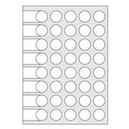 Biele kruhové etikety s priemerom 24 mm na hárku formátu A5. Balenie 16 hárkov.