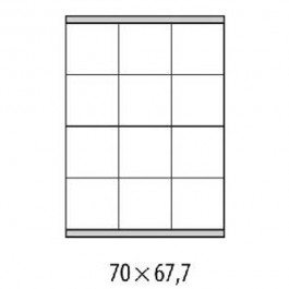 Sú vhodné pre laserové a atramentové tlačiarne, ako aj kopírovacie stroje. Gramáž papiera 130 g/ m2, hrúbka 127 mikrónov. Formát A4. Ostré rohy. Balenie 100 hárkov. Rozmery: 70×67,7 mm Počet etikiet: 1200 Balenie: 100 hárkov.