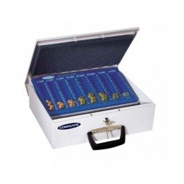Vysoko kvalitná europokladnička značky Rottner k bezpečnej úschove mincí a bankoviek. BRÜSSEL séria: vyrobená z vysoko kvalitného oceľového plechu, dve rukoväte, na kryte a na tele pokladničky cylindrický zámok, 2 kľúče, kvalitné spracovanie, mincovník pre EURO mince, v spodnej časti sú štyri prepážky pre EURO bankovky. Vonkajšie rozmery v mm: 110x360x290 Hmotnosť v kg: 3,50