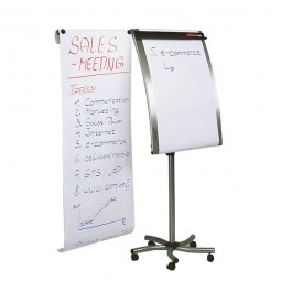 Stabilný robustný trojnohý stojan v modernom striebornom prevedení. Držiak papierového bloku s variabilným uchytením pre všetky dostupné druhy blokov je zároveň odkladacou lištou na popisovače. Farba strieborná. Súčasťou balenia je papierový blok a popisovač. Rozmery : 105x69cm Úprava : striekaná