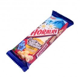 Horalky – obvodovo máčané oblátky v kakaovej poleve s arašidovou náplňou. Hmotnosť 50 g. Väčšie balenie 36 ks.