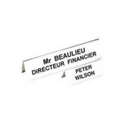 Obojstranne čitateľná stolová menovka z pevného PVC, vhodná na konferencie, recepčné pulty, ceny tovarov a popis produktov. Dodávaná s vymeniteľnou prázdnou kartou. Väčšie balenie 50 ks. Rozmery: 45×120 mm Výrobca: Fellowes