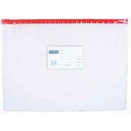 Plastový obal z PVC s uzatváraním na zips a štítkom na popis. Formát A4. Väčšie balenie 24 ks.