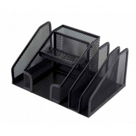 Drôtený stojan na kancelárske potreby, bločky, spony, perá a listy. Protišmykové gumové nožičky.