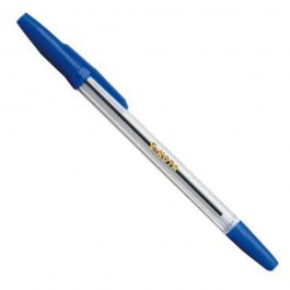 Jednorazové pero s priehľadným čírym telom. Zakončenie a uzáver vo farbe náplne.