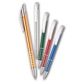 Guľôčkové pero v kombinácii kov plast. Spodný úchop je kovový a vrchná časť je plastová, vhodná na tampoprintovú potlač. Klip je kovový.