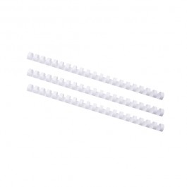 Plastové hrebene s 21 krúžkami, formát A4. Farba: biela Kapacita viazania: 81-100 listov Balenie: 100 ks