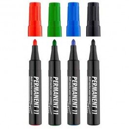 Permanentný popisovač s okrúhlym hrotom na alkoholovej báze,vodeodolný so šírkou stopy 3 mm. Sada 4 farieb