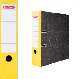 Štruktúrovaný papierový poťah s čiernym mramorovým vzorom, formát A4. Zakladač vybavený rado zámkom a nalepeným chrbtovým štítkom. Páková mechanika v dizajne MATT s prítlačnou lištou. Šírka chrbta 7,5 cm. Balenie 20 ks. Chrbát: 7,5 cm Farba: žltá