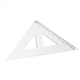 Transparentný pravouhlý trojuholník s kolmicou. Odvesna dĺžky 16 cm.