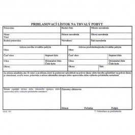 Prihlasovací lístok na trvalý pobyt A5