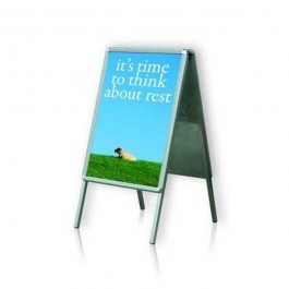 Info o produkte. Reklamný stojan pre veľkosti plagátov A0. Klaprám s oblými rohmi je z eloxovaného hliníka, priehľadná krycia antireflexívna fólia zamedzuje poškodenie plagátu.