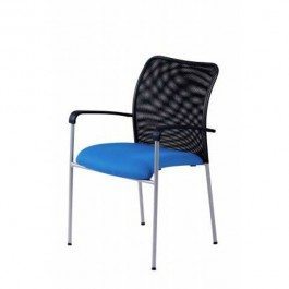 Rokovacia čalúnená stolička v modernom dizajne, stohovateľná. Sivý oceľový rám, operadlo čalúnené samonosnou sieťovinou, nosnosť 120 kg. Poťah látka. Farba a materiál: sieťovina a látka modrej farby