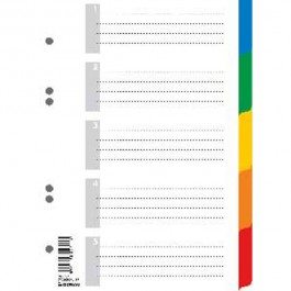 5-dielny A5 plastový farebný rozraďovač s eurodierovaním a titulným listom na popisovanie obsahu. Balenie jedna sada v polyesterovom sáčku. Väčšie balenie 40 sád.