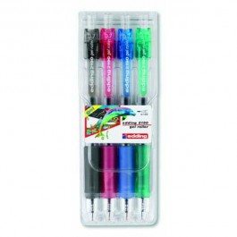 Kvalitný roller s vymeniteľnou gélovou náplňou. Plastový priesvitný povrch s pogumovaným ergonomickým úchytom. Šírka stopy 0,7 mm. Sada štyroch štandardných farieb. Náhradné náplne ED1708.