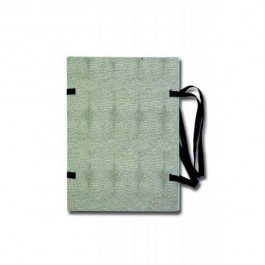 Jednostranne poťahované kartónové dosky bez chrbta zo strojnej lepenky s gramážou 1250 g, spojené šnúrkami. Formát A4. Prevedenie hadia koža. Balenie 25 ks. Farba: čiena/biela