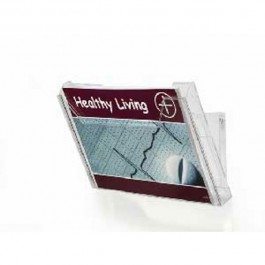 Stojan na prospekty a časopisy formátu A4 na ležato s jedným odkladačom a závesným dielom na stenu, resp. stôl. Naplnenie materiálmi do hrúbky 24 mm. Tento základný modul je možné rozšíriť pridaním ďalších odklačov DU8579 19. Materiál priehľadný plast.
