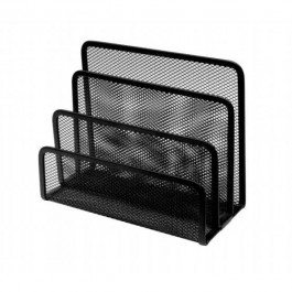 Drôtený stojan na listy s tromi priehradkami. Rozmery 170 × 130 × 80 mm. Farba: čierna