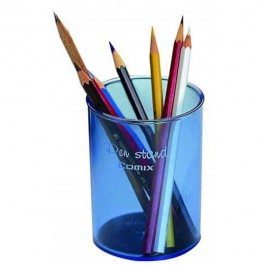 Pohárik na perá plastový, Comix s penovou vložkou. Priemer: 7,5cm, výška 10,5cm, váha: 80g. Elegantný, metalický vzhľad! Farba: modrá