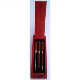 Súprava guľôčkového pera, mikroceruzky a otvárača na listy v drevenej darčekovej kazete.