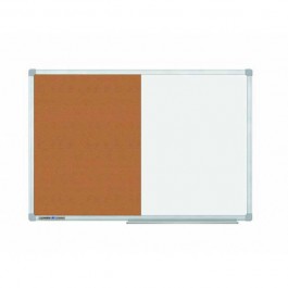 Tabuľa šetriaca miestom. Polovica tabule s povrchom z prírodného korku na oznamy, pripevňované špedlíkmi, druhá polovica biela magnetická tabuľa v lakovanej úprave s výhodami bielej tabule, popisovateľná za sucha stieracími popisovačmi a možnosťou využívania magnetov. Hliníkový rám s rohovými spojkami zo sivého plastu a otvormi na montáž. Aplikácia na šírku alebo na výšku. Dodávaná s montážnou sadou a odkladacou lištou dĺžky 30 cm. Rozmery: 90×120 cm Hmotnosť cca 5 kg/ m?.