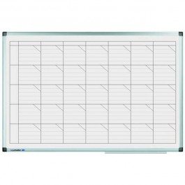Tabuľa s popisovateľným magnetickým a špeciálne lakovaným a UV tvrdeným povrchom vo verzii týždňového plánovača pre 5 ľudí/ projektov alebo pre jedného človeka na obdobie 5 týždňov. Veľký priestor pre informáciu. Rozmery denného okna 110 × 120 mm. Magnetický popisovateľný povrch. Sada príslušenstva zahrňuje 4 stierateľné popisovače TZ 111 a 8 okrúhlych magnetov priemeru 25 mm. Rozmery: 60×90 cm Veľkosť okna š x v: 120×110 mm Súčasť balenia: popisovače, magnety, 30 cm hliníková odkladacia lišta