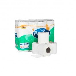 Dvojvrstvový toaletný papier, 100% celulóza. Návin 18m. Balenie po 24ks.