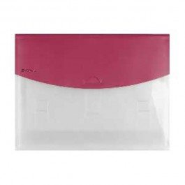 Uzatvárací obal z elegantného pevného polypropylénu s vysúvacími priehľadnými vreckami. Hrúbka: obal 450 µm, vrecká 200 µm.