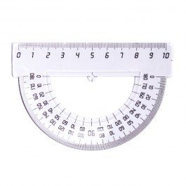 Transparentný uhlomer do 180°, dĺžka 10 cm.