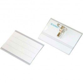 Visačka z pevného priehľadného PVC. Uchytenie na odev pomocou štipca alebo zatváracieho špendlíka. Výrez na jednoduchšie vyberanie kartičky. Rozmery 90 x 57 mm. Balenie 50 ks.