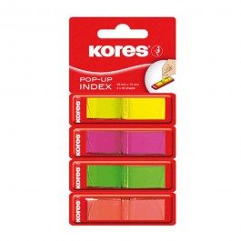 Znovu použiteľné plastové samolepiace záložky v 4 neónových farbách Vhodné na označenie, usporiadanie i rozčlenenie dokumentov, časopisov a pod – nekrútia sa – praktický podávač pre jednoduché použitie – 40 záložiek od každej farby o veľkosti 12x45mm