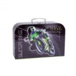 Rozmery : 130 x 210 x 45 mm Peračník obsahuje : – 2 modré perá – 2 ceruzky – 8 pasteliek – žltá, ružová, červená, svetlo zelená, tmavo zelená, modrá, hnedá, čierna, – 6 fíx – žltá, červená, modrá, zelená, čierna, hnedá – guma, – strúhadlo, – pravítko 17 cm, – trojuholník 10 cm. Zapínanie na zips