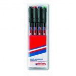 Permanentný popisovač s vysokonepriehľadným atramentom, vhodný na popisovanie priesvitných fólií pre spätnú projekciu, na sklo a umelú hmotu. Vodeodolný, zmazateľný iba liehom. Okrúhly hrot so šírkou stopy 1 mm. Sada štyroch štandardných farieb.