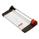 Rezačka z pevného oceľového plechu vhodná na rezanie papiera, kartónu, kože, plastu. Vrchný a spodný rovný nôž vyrobený z kvalitnej nožiarskej ocele Solingen, ručný prítlak s ochranu na prsty. Presná mierka v cm a DIN formátoch, zadný doraz, na spodnej časti výrezy na pohodlné prenášanie. Dĺžka rezu: 340 mm Kapacita: 15 listov Prítlak: ručný